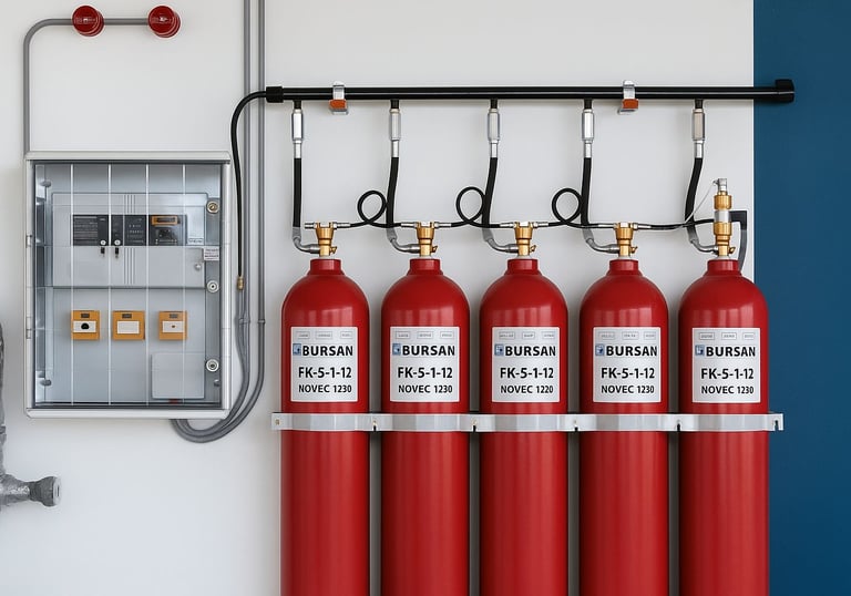Farklı risk alanlarına uygun olarak FK-5-1-12 (NOVEC 1230), FM200 ve CO₂ gazlı söndürme sistemleri ile tesislerinizi koruma altına alıyoruz.